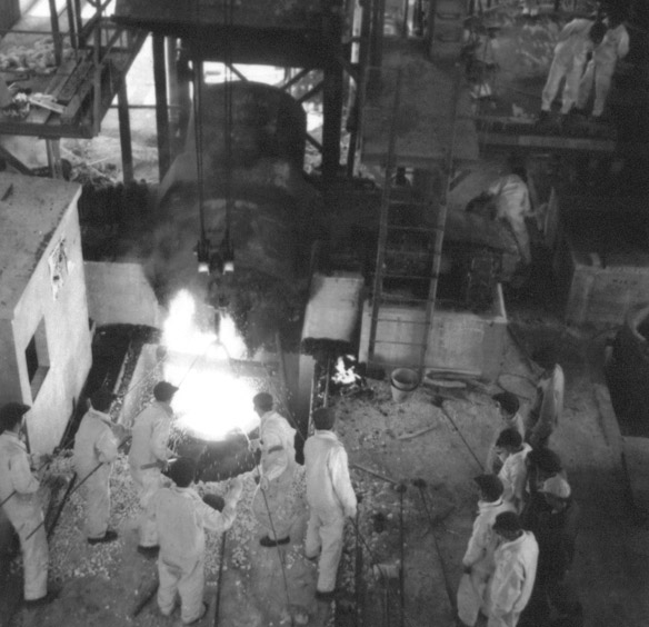 煉鋼車間一號(hào)爐煉出了第一爐鋼水